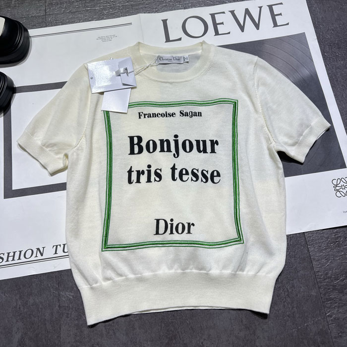 Dior Book Cover Short-Sleeved Sweater White and Green Silk Knit 624S24B6015 X0100