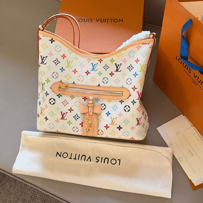 Celebrate 130 years of Louis Vuitton with this vibrant anniversary handbag. Perfect for work or weekends, it features bold Monogram canvas, a chic bow-tie charm, and metallic stud accents.